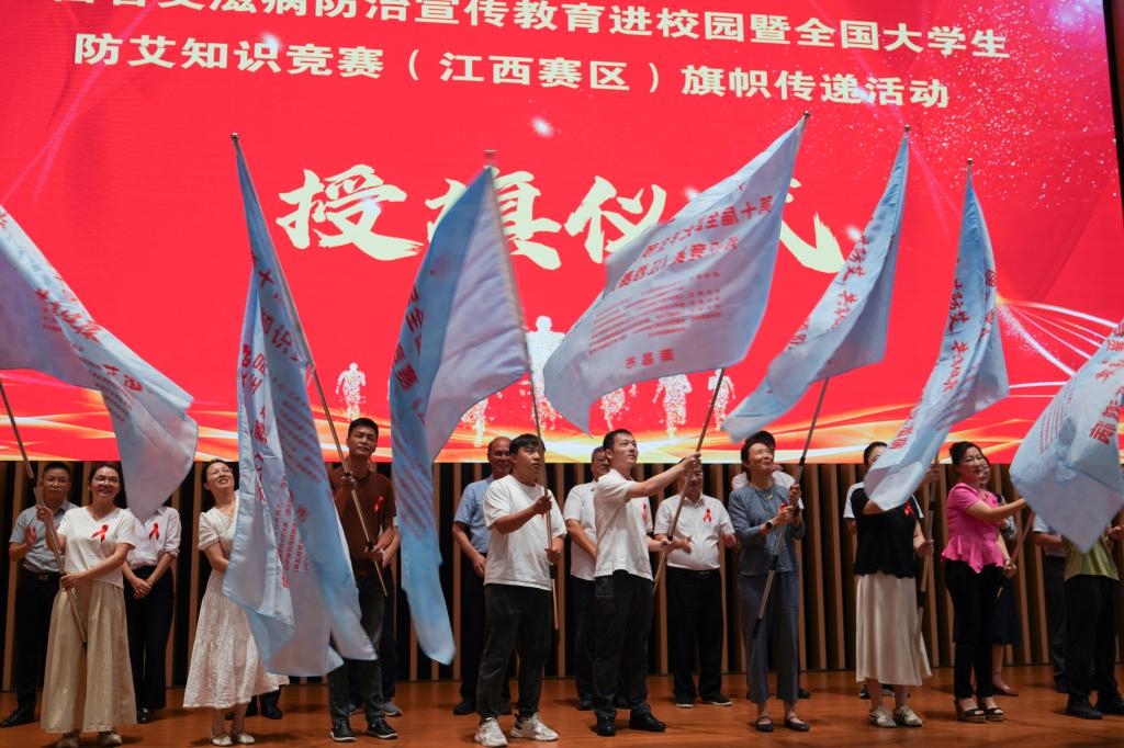 本网讯 10月18日,江西省艾滋病防治宣传教育进校园暨全国大学生防艾知识竞赛(江西赛区)旗帜传递活动启动仪式于我校三江校区(东园)志远会议中心一楼1号会议厅举办。中国预防性病艾滋病基金会理事长(原疾控局二级巡视员)孙新华 、校党委常委、副校长黄志繁、江西省性病艾滋病防治学会会长(原省卫健委二级巡视员)何晓军 、中国预防性病艾滋病基金会常务副理事长、代理秘书长(原中国疾控中心艾防中心党委书记)刘中夫等出席活动。来自各设区市疾控部门、机构代表,参加大学生防艾知识竞赛旗帜传递活动高校代表与我校师生代表共同参加活动。