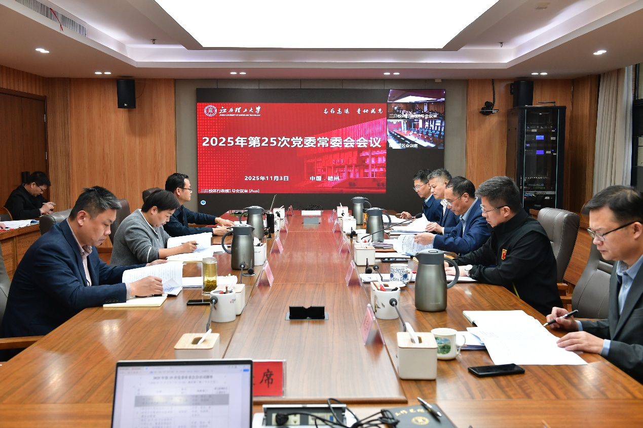 本网讯 11月3日,我校在三江校区(东园)濂溪楼1号会议室召开党委常委会会议,传达学习党的二十届四中全会精神,并对学校学习宣传贯彻全会精神进行部署。校党委书记刘祖文主持会议并讲话,全体在家校领导、党委常委参加会议。