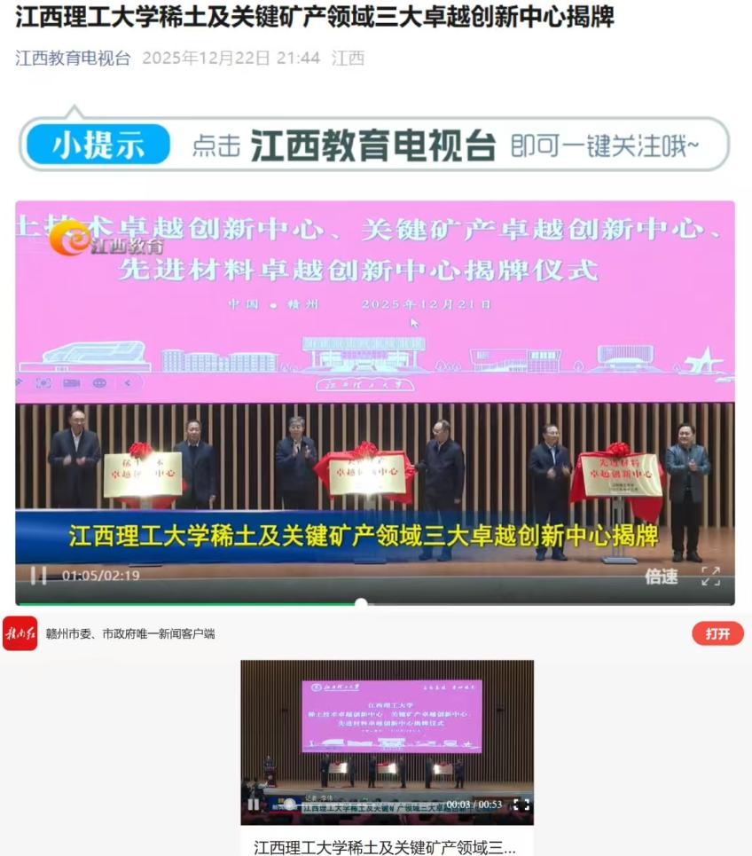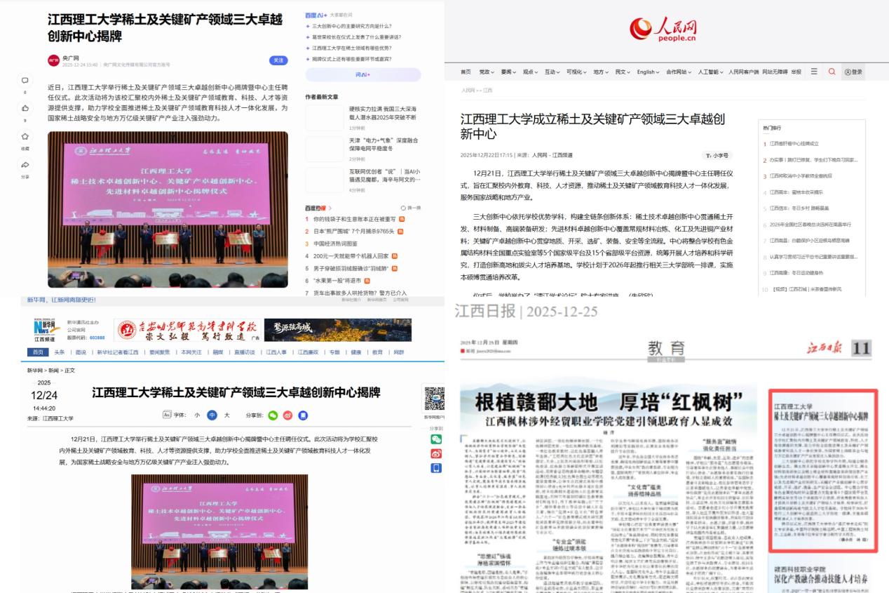 《央广网》《新华网》《中国教育新闻网》在重要版面进行报道,强调三大中心为我国产业链供应链韧性提供的坚实科技支撑;《人民网》在江西频道显著位置刊发新闻消息,阐述我校通过组建三大创新中心、整合平台资源及推行本硕博贯通培养等系统性机制创新,来推进稀土与关键矿产领域教育、科技、人才的一体化发展;《中国有色金属报》《科技日报》《江西日报》刊发报道,解读乳头高潮-女性乳头高潮