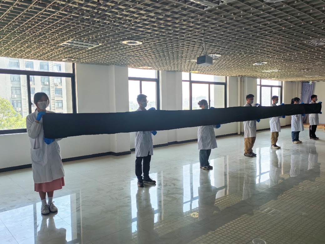 本网讯 近日,我校吴子平教授带领的碳纳米材料及柔性能源器件团队在柔性导电材料领域取得新进展,团队师生利用发现的碳纳米管连续体,通过层层组装,实现了结构定向的碳纳米管膜卷制造,所得膜长10.464 m,宽0.402 m,厚14 μm。经检索,它是国际上面积最大的碳纳米管膜,成功在2025年10月31日创下吉尼斯世界纪录,这为其工业应用奠定了基础。
