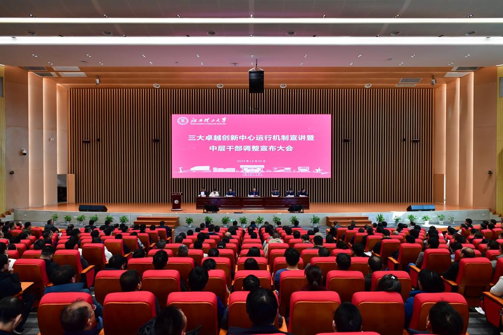 校党委书记刘祖文在讲话中指出,本次大会既是学校事业发展进程中的一件大事,也是立足新起点、激发新动能的关键一步。他强调,要提高政治站位,深刻认识成立三大卓越创新中心的战略意义,自觉把思想和行动统一到学校党委决策部署上;要把握核心要义,准确理解机构设置与运行部署的要求,确保以三大中心建设有力支撑学校事业高质量发展;要强化责任担当,以过硬作风履行新使命新职责,筑牢政治忠诚、提升履职本领、锤炼优良作风,以饱满热情和务实举措推动工作落实。