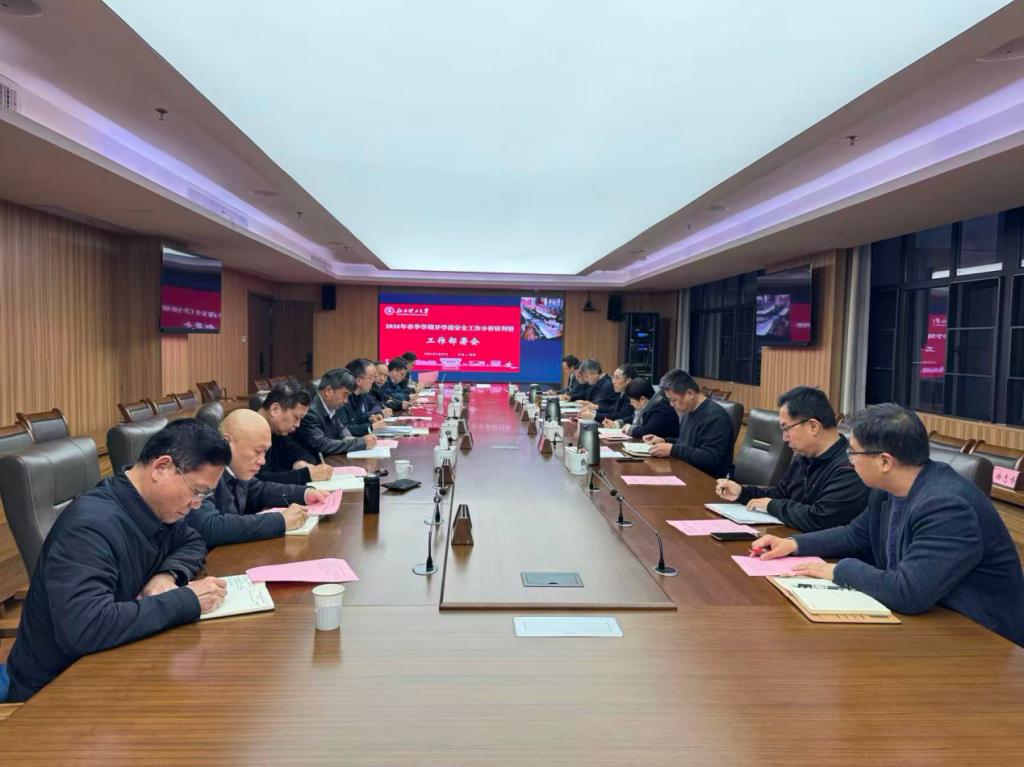 本网讯 2月27日,我校2026年春季学期开学前安全工作情况分析研判暨工作部署会在三江校区濂溪楼2号会议室召开。校党委书记刘祖文,校党委常委、副校长董冰岩、宁洁,校党委常委、宣传部部长盛晓明,校党委常委、统战部部长汪锋锁出席会议,相关职能部门负责人参加会议。会议由董冰岩主持。