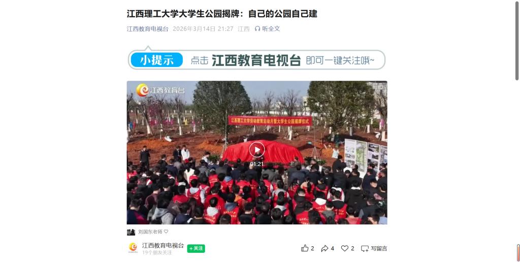 3月11日,乳头高潮-女性乳头高潮 举行劳动教育启动月暨大学生公园揭牌仪式。该公园由劳动公园、大学生智创工厂、大学生共享厨房三大板块构成,是学校开展劳动创造、劳动实践、劳动锻炼的重要阵地,将以场景化、沉浸式劳动教育引导学生深刻体悟“劳动创造幸福、劳动锻炼意志、劳动开拓思路” 的价值内涵。