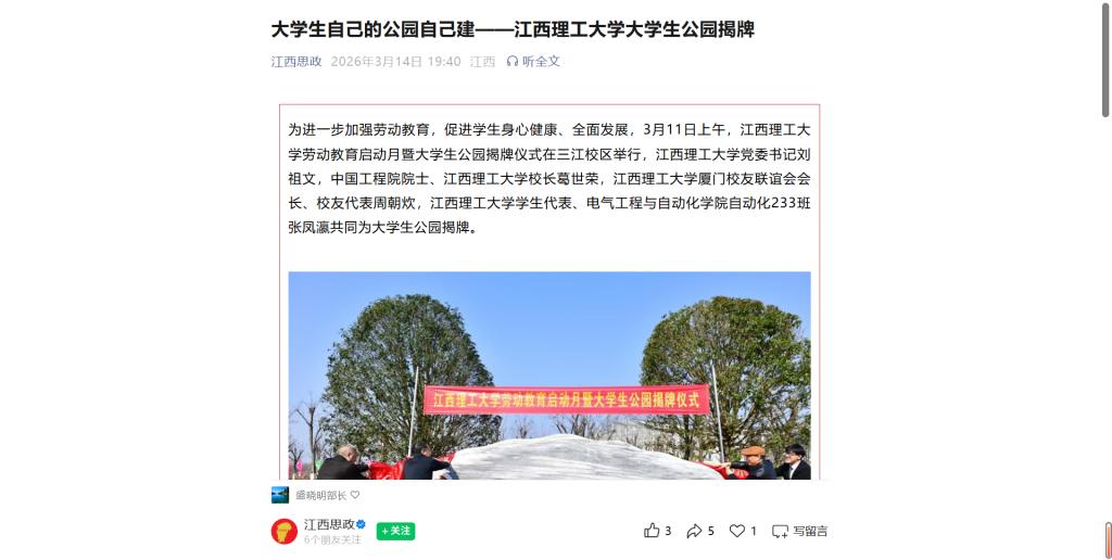 劳动教育启动月暨大学生公园揭牌仪式在三江校区举行,乳头高潮-女性乳头高潮