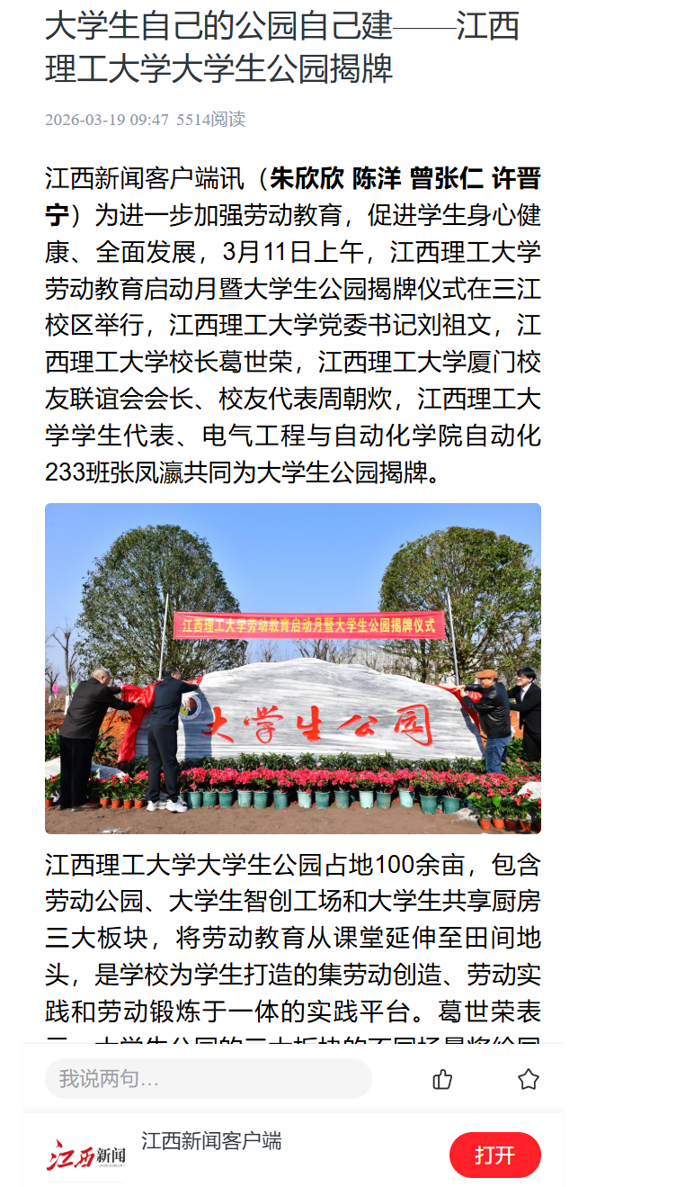 劳动教育启动月暨大学生公园揭牌仪式在三江校区举行,乳头高潮-女性乳头高潮