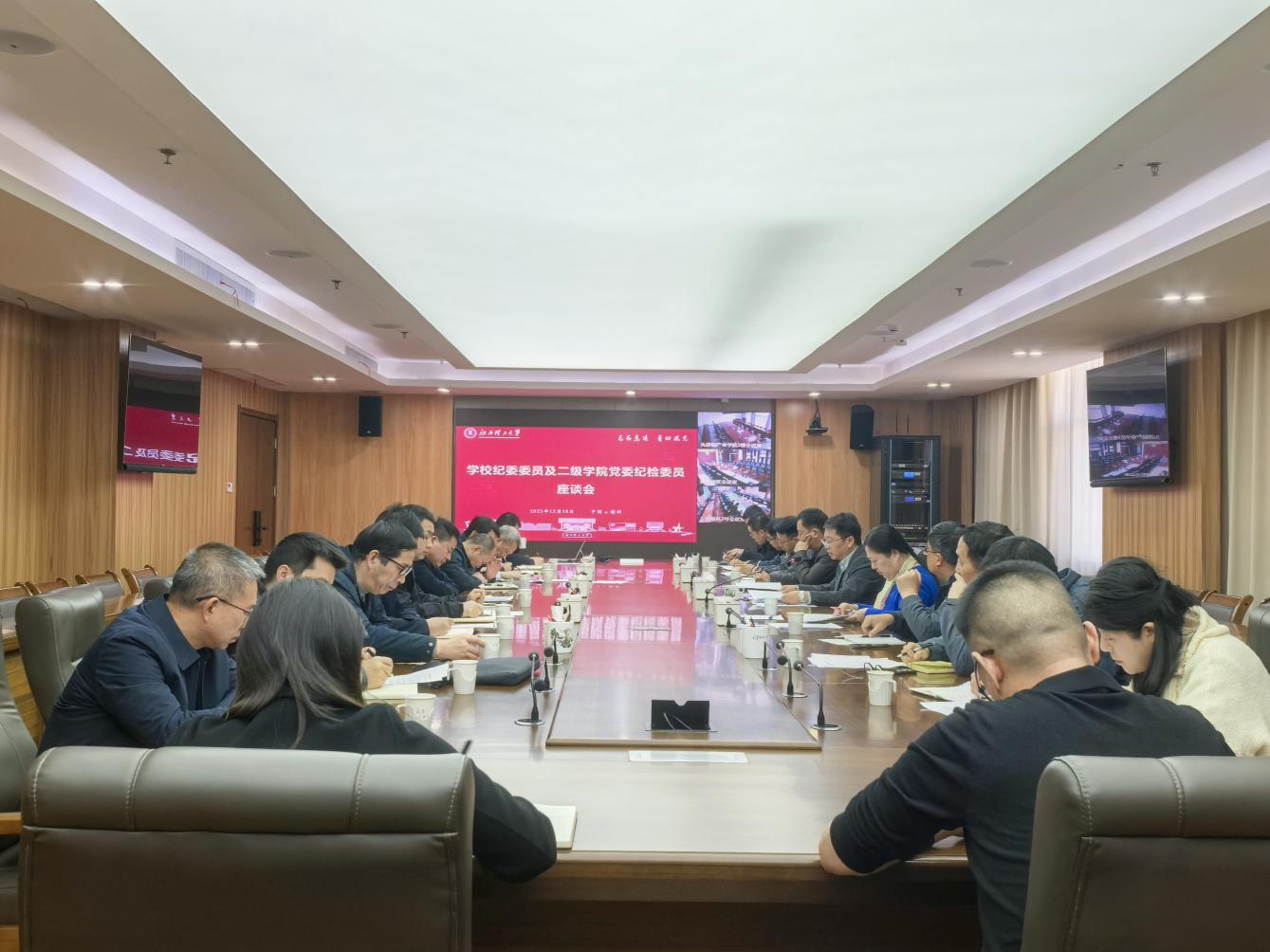 本网讯 12月18日,我校在濂溪楼三楼2号会议室召开纪委委员、二级党委纪检委员座谈会。校党委常委、纪委书记、监察专员刘飞主持会议并讲话。学校纪委委员、各二级党委纪检委员参加会议。