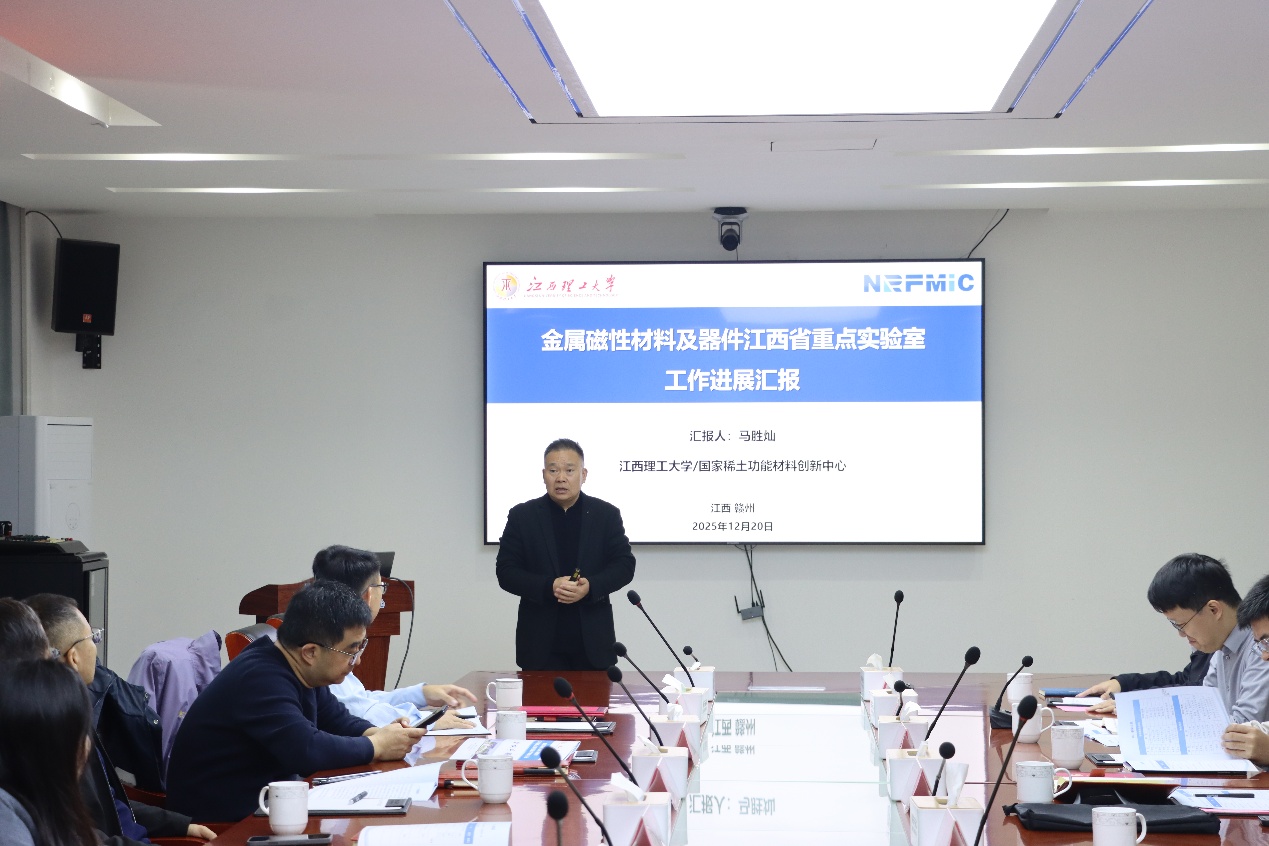 本网讯 12月20日,金属磁性材料及器件江西省重点实验室(以下简称“重点实验室”)学术委员会第一次会议在国家稀土功能材料创新中心顺利召开。会议由金属磁性材料及器件江西省重点实验室主办,我校稀土学院和国家稀土功能材料创新中心共同承办。北京航空航天大学于荣海教授、北京理工大学沈俊教授、北京工业大学教授岳明、天津工业大学张雪峰教授、杭州电子科技大学王敦辉教授、华南理工大学刘仲武教授、福建省金龙稀土股份有限公司黄清芳高级工程师等专家出席了此次会议。我校党委常委、统战部部长汪锋锁,科技处处长吴彩斌,稀土学院副院长黄建辉以及重点实验室部分成员参加会议,会议由稀土磁性材料及器件研究所副所长杨牧南教授主持。