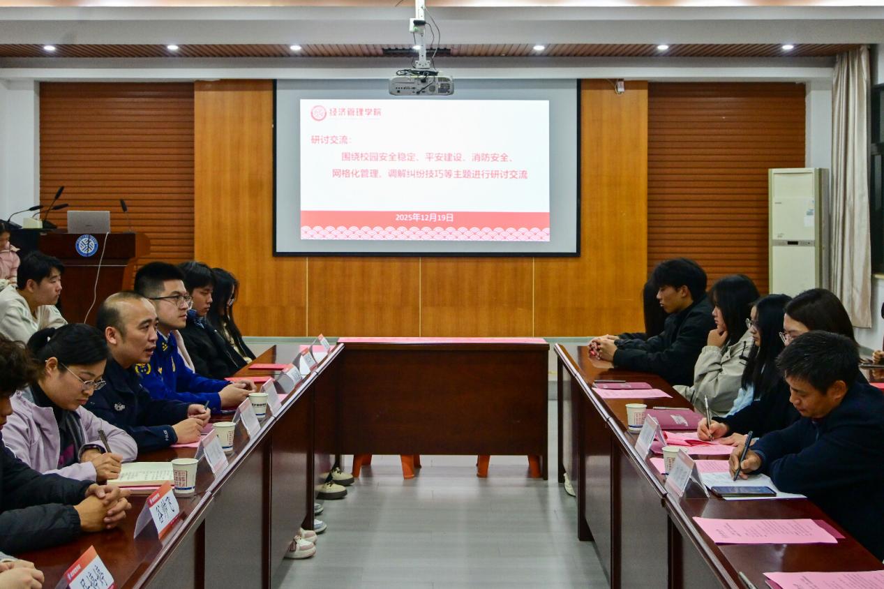 本网讯 为稳步推进红旗园“一站式”学生社区高质量建设,凝聚校地协同育人合力,12月19日,我校举办“一站式”学生社区红旗园管理服务工作座谈会。党委学生工作部部长刘传立,校党委武装部部长、保卫处处长陈龙泉及章贡分局南外派出所副所长胡嵘、章贡区消防救援局参谋胡望林和章贡区南外街道木栏井社区党委书记干慧敏参加会议。红旗校区园长、经济管理学院党委副书记吴媛主持。红旗校区各学院党委副书记及学生代表共同参加。