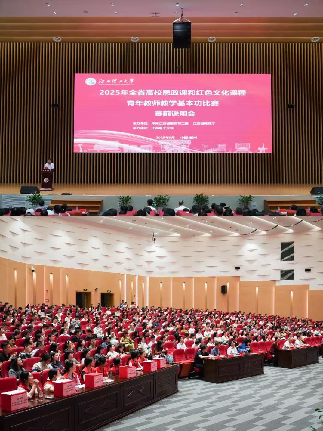 本网讯 为进一步推进我省“大思政课”综合改革试验区和红色文化育人高地建设,切实提升高校思政课教师教学能力,不断提高思政课的针对性和吸引力,5月23日至24日,由中共江西省委教育工委、江西省教育厅主办,我校承办的2025年全省高校思政课和红色文化课程青年教师教学基本功比赛在三江校区举行。来自全省111所高校(本科高校43所,高职高专68所)的450余名青年教师参赛,另有300余人前来观摩。
